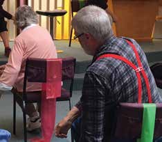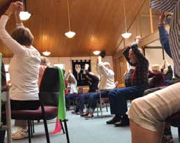 “None of the exercises are on the floor. People are either sitting on chairs or standing up. We always say, if it hurts don’t do it. And we say – ‘stand-up’ and if you’d rather sit down, that’s good: you know what you can do. We’re really strong on selfmanagement.