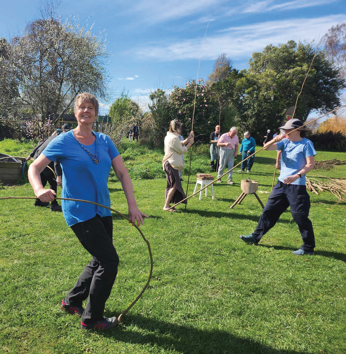 During the festival event, a range of activities were held on site to share learnings and techniques with community members. It was a glorious day and over 100 people attended the event. Learning events on the day included weaving sessions where people were taught how to use willow, cracked willow and walnut to weave natural fences. Two natural fences were built on site with participants enjoying the opportunity to get hands on experience. Everyone loved watching the hazel fence take shape, and in just a few hours, a beautiful fence had been created to surround the seating area and give it a cosy vibe.