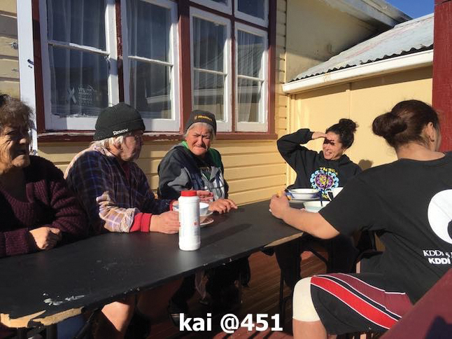 Te Huinga has always had free food (bread and produce) delivered from local supermarkets (through St Vincent de Paul). We distribute it to all who show up keeping a little so we can cook a lunch for residents one day a week – we call it kai@451. Initially, we were doing the cooking ourselves, now more people are joining in and helping with setting up, cooking and cleaning. We also receive food from Kaibosh for Whakaoho on Thursday evenings and for the community on Friday’s to help them through the weekend. Every day we have new faces at the community hub – and they are people of all different ethnicities. We are breaking down barriers and helping people to come out of isolation by providing a place for people to come along and join in.