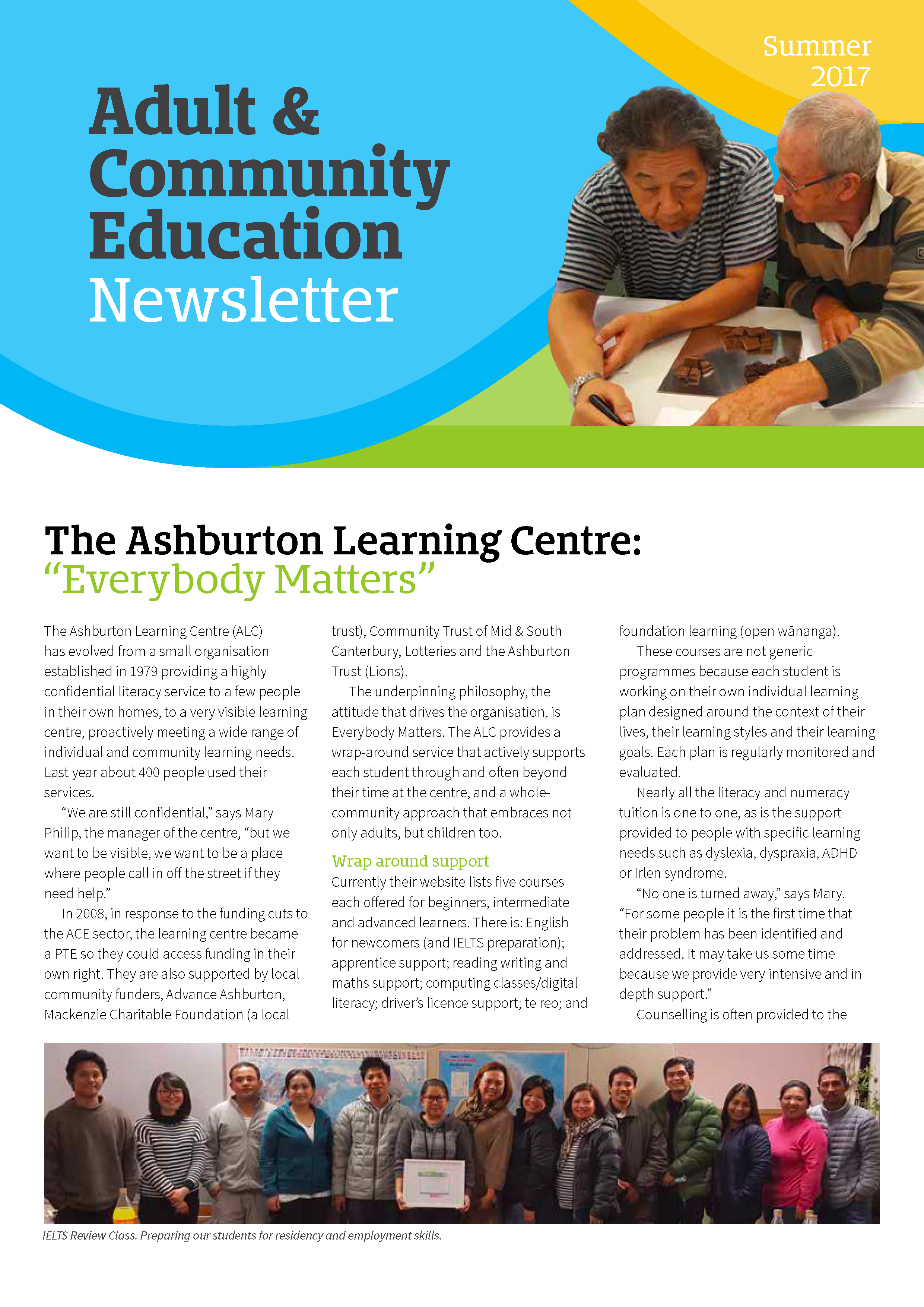 The ACE Aotearoa Winter Newsletter 2017 contains: