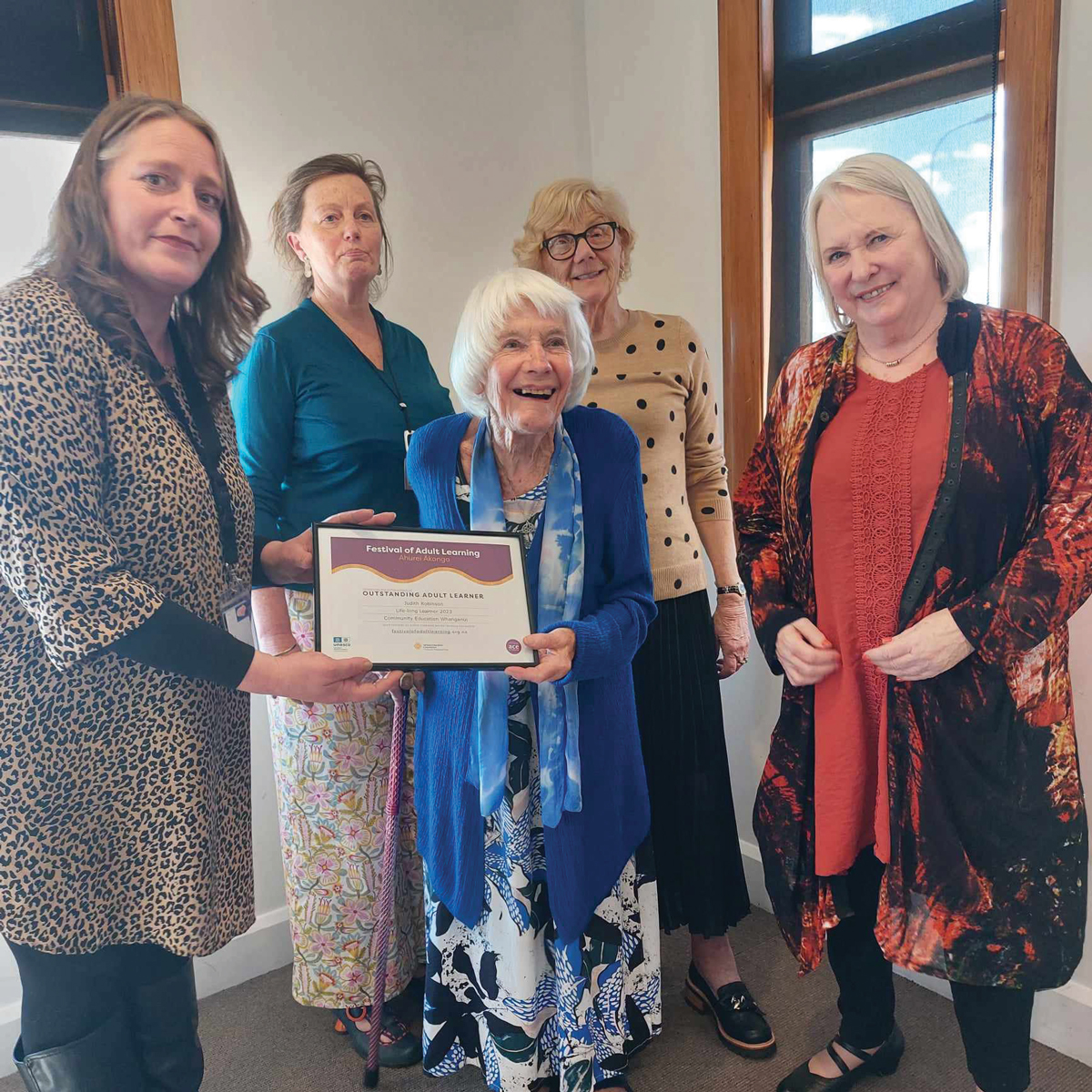 Whanganui resident and lifelong learner Judith Robinson was recognised with a lifelong learning award presented by Community Education Whanganui (CEW) at a special event held during the Festival of Adult Learning Ahurei Ākonga in September 2023. Judith has lived in Whanganui since 2007 and during that time has continued with her lifelong learning journey, taking up watercolours, clay, needle-felting, and ukulele. All this follows on from a life spent teaching both in Aotearoa and the UK where she taught geography at a girls’ grammar school before tutoring at a residential field studies centre.