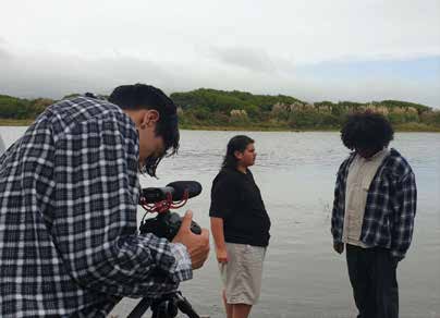 “At Kaitaia we had about 18 in the workshop. We create a space where it is safe for young people to make a short film – and show them just how simple it is. They work in small teams, so they learn teamwork and problem-solving skills. They learn how to present an idea – how to stand in front of a whole group and pitch their idea. They learn how to structure a story and to use all the film gear. They come to the workshop very shy and awkward. At the end of the first day they are pumped and ready to pitch their idea. By the end it is obvious that they feel more confident in themselves and in their Māoritanga. It is an eyeopener for a lot of them, realising that there is a place for us in the industry.”